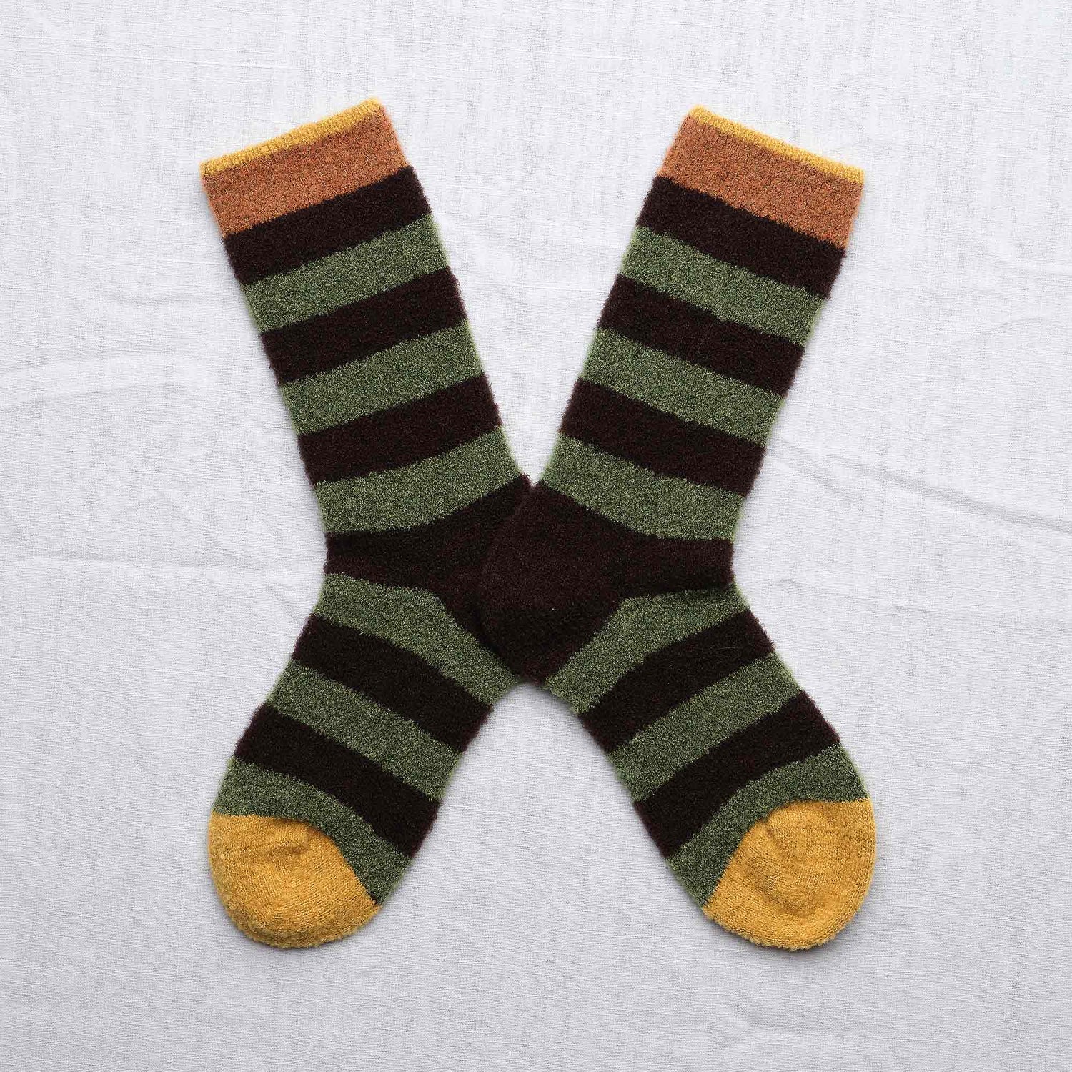 AW25 Wool Laine Bouclette Rayures Noir Vert (Warm) | BCL2-02