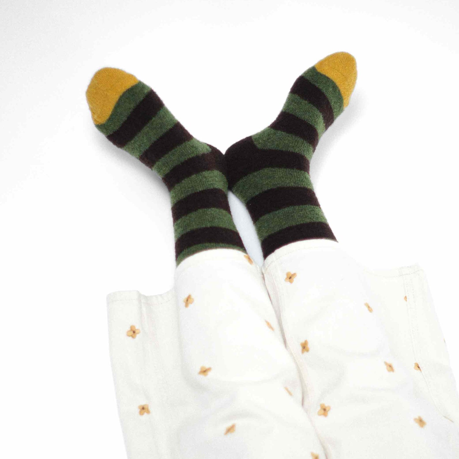AW25 Wool Laine Bouclette Rayures Noir Vert (Warm) | BCL2-02 - 均碼 目前缺貨,到貨後將立即為您寄出。