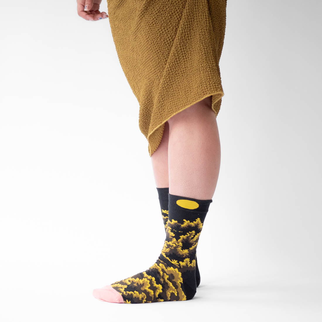 當陽光穿透樹梢,大自然在背光處編織出令人屏息的圖案。本系列 透過複雜的編織技術,重現這些光影瞬間。層次分明的顏色與質感,就像森林裡光與影的交錯,神秘又富有質感,讓您的雙腳變成大自然的畫布。