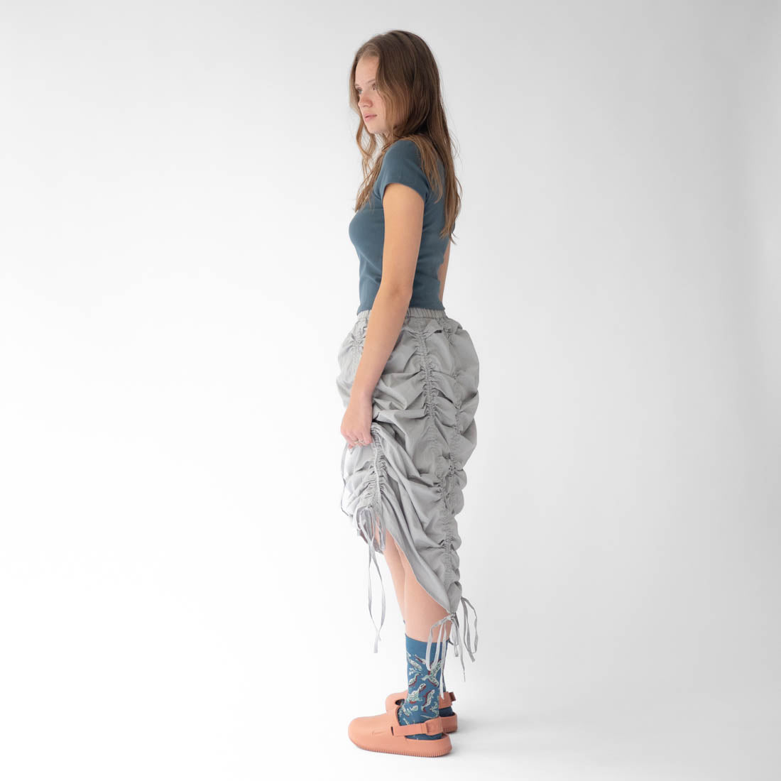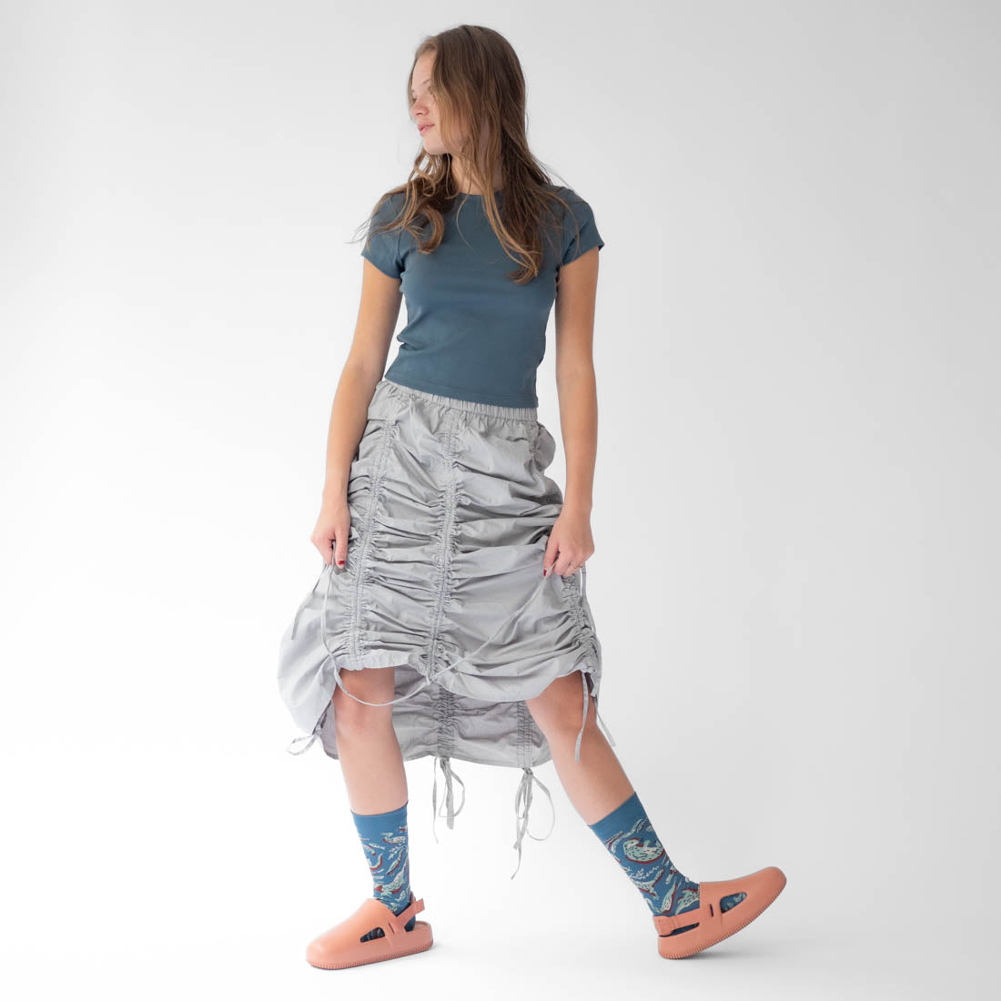 本系列 靈感來自沐浴在晨光中河流的輕柔潺潺聲,捕捉了水的流動性和光影的微妙互動。每雙襪子似乎都體現了河流流動的精髓--輕盈、平滑,並閃爍著微妙的光芒。每走一步,都彷彿踩在漣漪蕩漾的水面上,擁抱著大自然的溫柔低語。