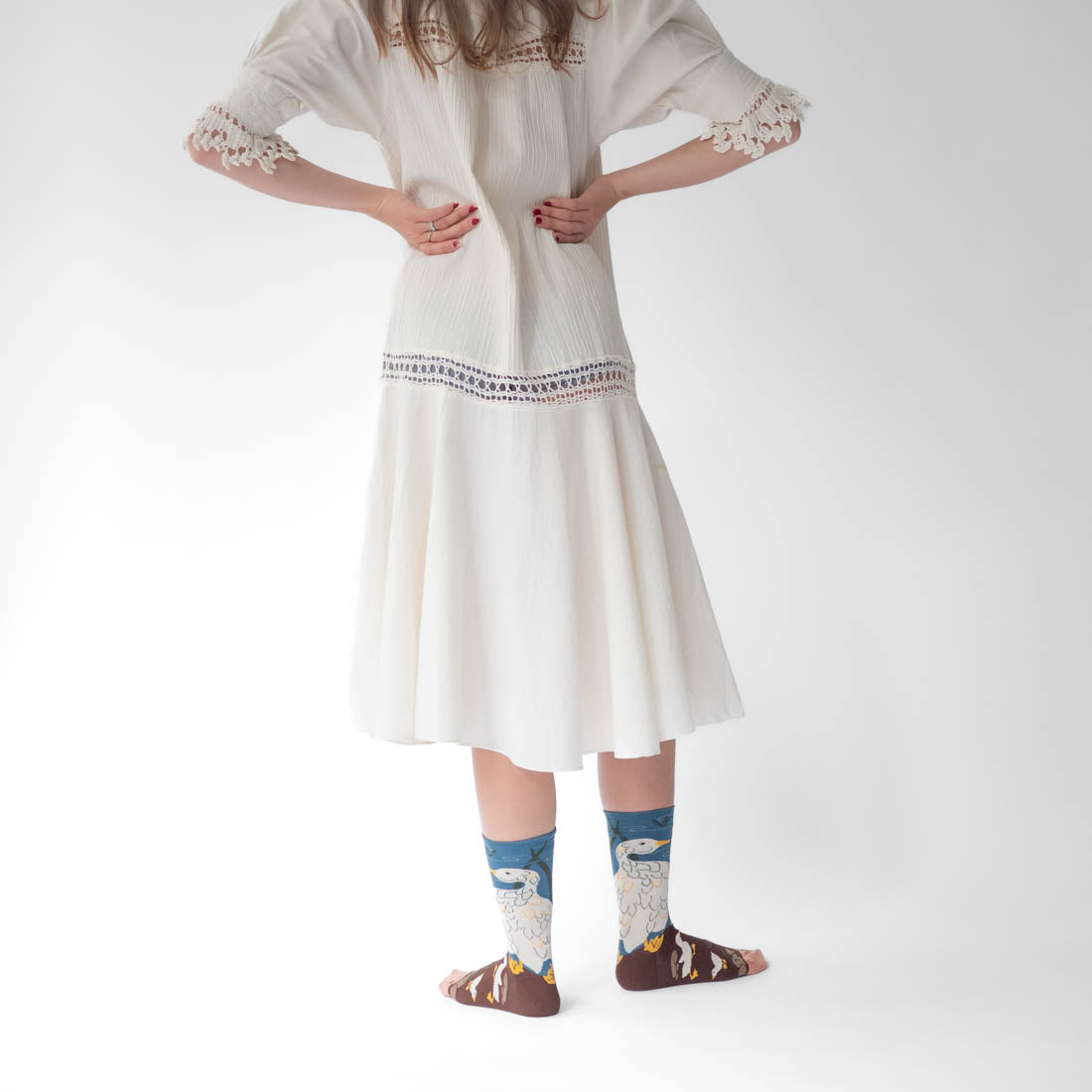 本系列 靈感來自沐浴在晨光中河流的輕柔潺潺聲,捕捉了水的流動性和光影的微妙互動。每雙襪子似乎都體現了河流流動的精髓--輕盈、平滑,並閃爍著微妙的光芒。每走一步,都彷彿踩在漣漪蕩漾的水面上,擁抱著大自然的溫柔低語。