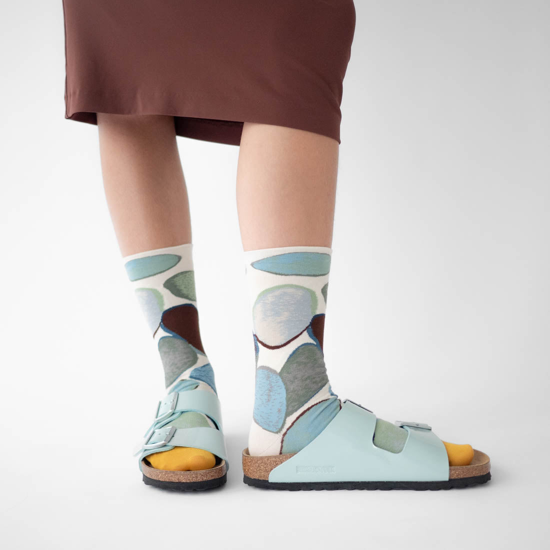 本系列 靈感來自沐浴在晨光中河流的輕柔潺潺聲,捕捉了水的流動性和光影的微妙互動。每雙襪子似乎都體現了河流流動的精髓--輕盈、平滑,並閃爍著微妙的光芒。每走一步,都彷彿踩在漣漪蕩漾的水面上,擁抱著大自然的溫柔低語。