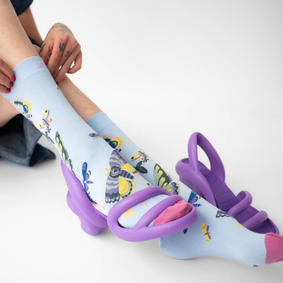 本系列 靈感來自日本山脈的拼湊風景,完美融合了大地的豐沛與老虎的威猛。狂野的條紋與夢幻的色彩交織在一起,展現出大自然的活力與力量。每雙襪子彷彿都帶著山的靈魂,讓您即使身處都市叢林,也能感受到大自然的壯麗與野性。
