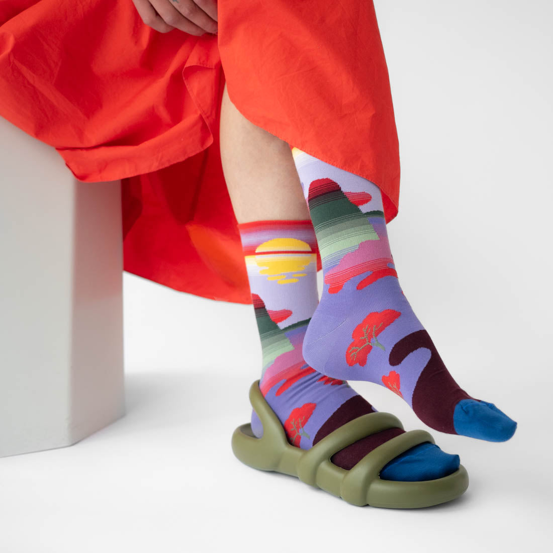 本系列 靈感來自日本山脈的拼湊風景,完美融合了大地的豐沛與老虎的威猛。狂野的條紋與夢幻的色彩交織在一起,展現出大自然的活力與力量。每雙襪子彷彿都帶著山的靈魂,讓您即使身處都市叢林,也能感受到大自然的壯麗與野性。