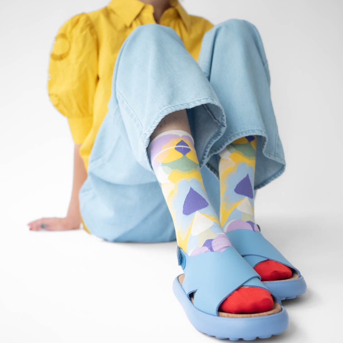 本系列 靈感來自日本山脈的拼湊風景,完美融合了大地的豐沛與老虎的威猛。狂野的條紋與夢幻的色彩交織在一起,展現出大自然的活力與力量。每雙襪子彷彿都帶著山的靈魂,讓您即使身處都市叢林,也能感受到大自然的壯麗與野性。