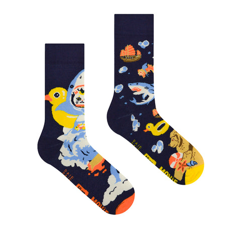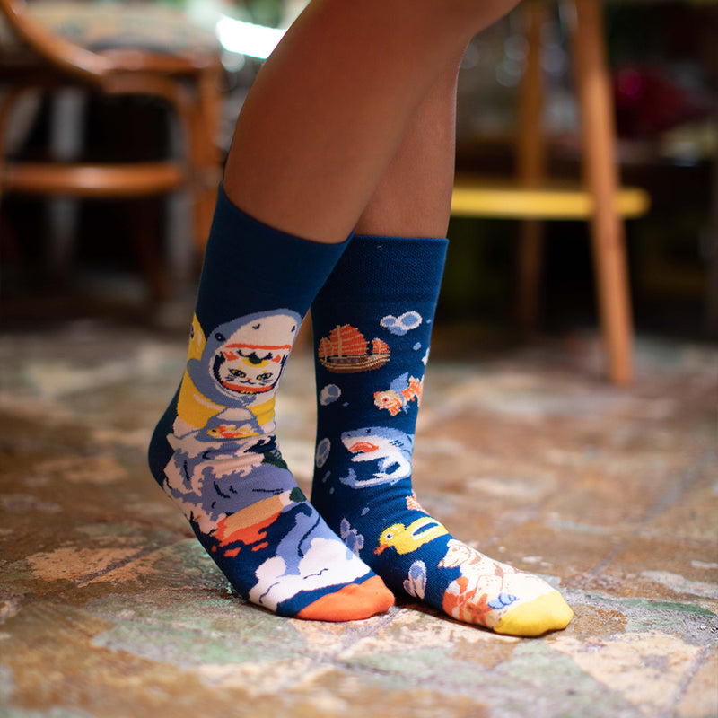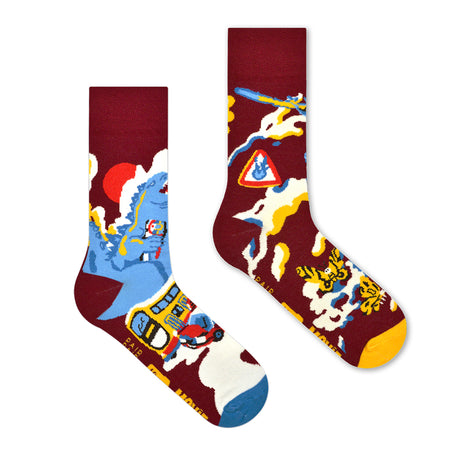 這系列的創作靈感啟發自三個大家耳熟能詳的怪物電影,並由 Vivian Ho 以大膽及荒謬的風格畫出怪物們以驚喜方式現身三個香港極具本土情懷的場景。在維港裏暢泳的鯊魚、在雞蛋仔裏爬出來的長髮女鬼和在香港鬧市肆虐破壞的怪獸。怪物們出沒於香港本土的標誌性場景,帶來幽默感十足的藝術衝擊。配合 Pair Pair Full 代表性的「鴛鴦」設計,這個系列將大膽的色彩與創意相融合,為Pair Pair Full 注入全新活力。