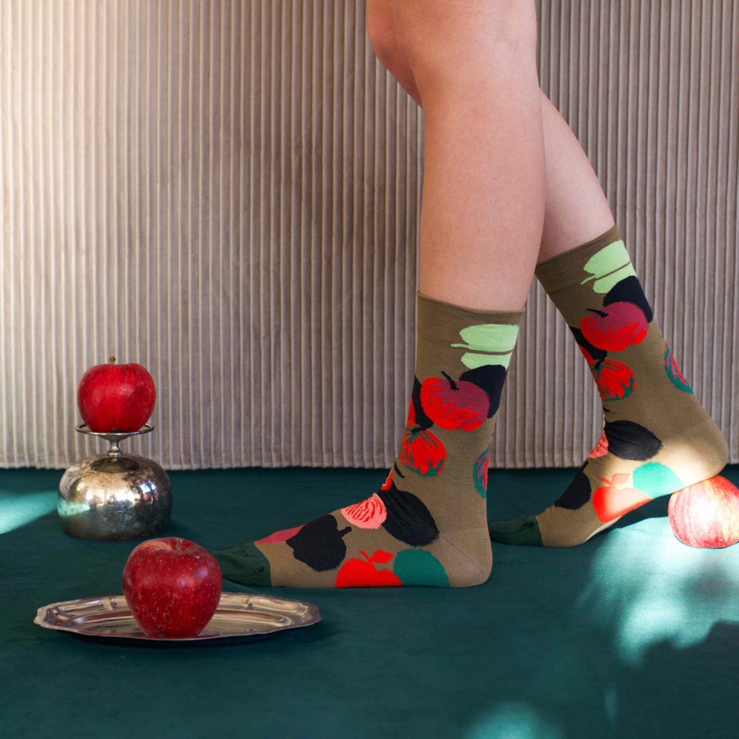 在森林深處,夜幕低垂,燈籠的光芒將黑夜染成一片深紅。空氣中瀰漫著神秘的氣息。我們不禁自問,這些美麗的蘑菇是否有毒?這些蘋果是否被下了詛咒?在紅色光暈中的女人,是否擁有魔法力量?葉子般的手,輕輕地摘下冬青樹上鮮紅的漿果—它們是藥物,還是別有深意?