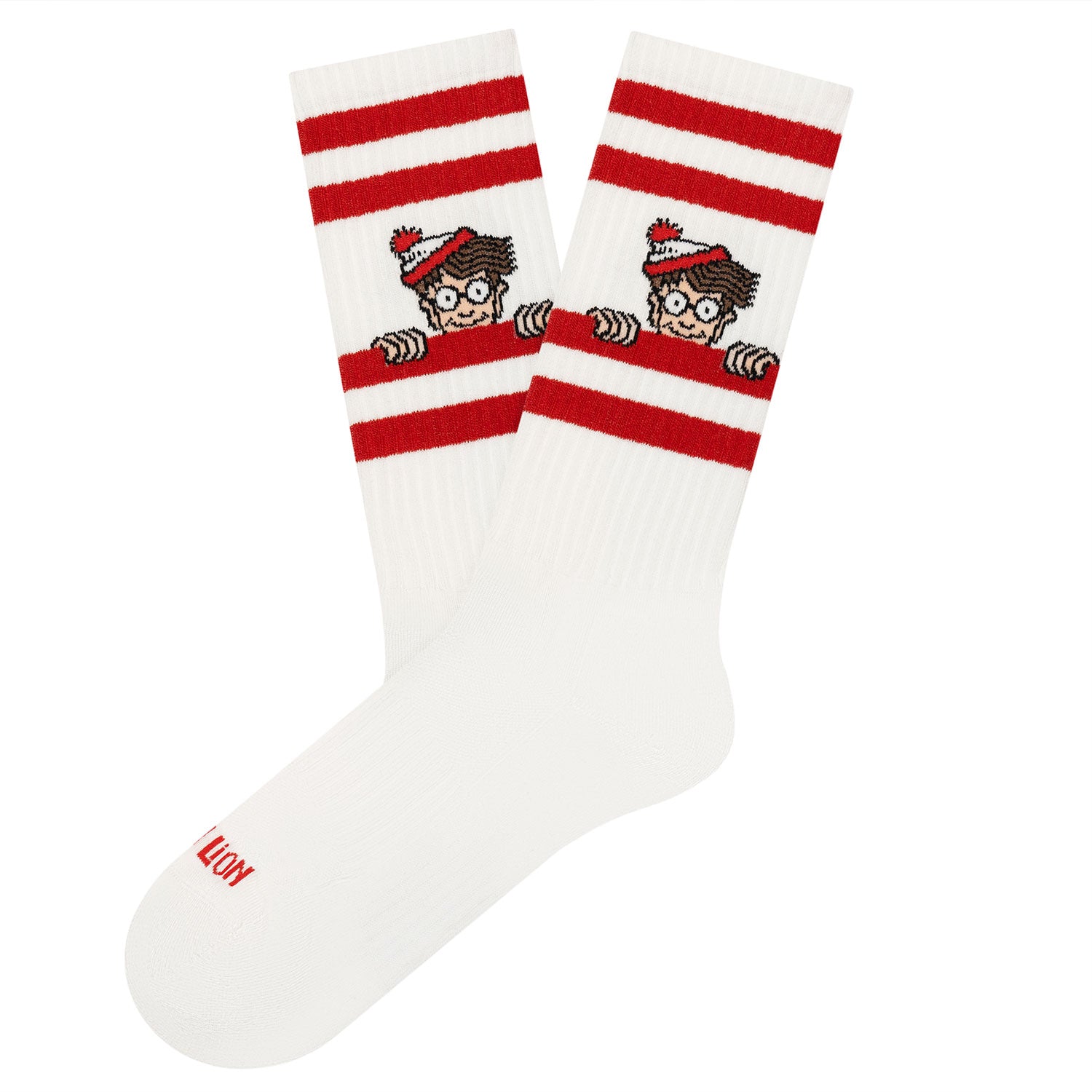 熱門的運動風潮再次席捲兒童衣櫥,為您帶來 Kids Athletic Wally,這是我們最暢銷的成人設計之一的迷你版。孩子們一定會喜歡!現在他們不必再花下午時間翻書找 Wally 了,他熟悉的帽子和眼鏡已經可以陪伴他們了......就在他們的襪子上!白色的底色加上襪腿上的雙紅色條紋,讓這雙襪子成為本季最百搭、最搶眼的配飾。孩子們一定不想脫下來!