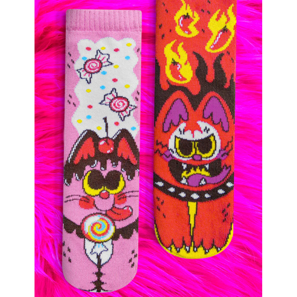 Purrty Sweet & 貓科動物辣味 不對稱襪 成人