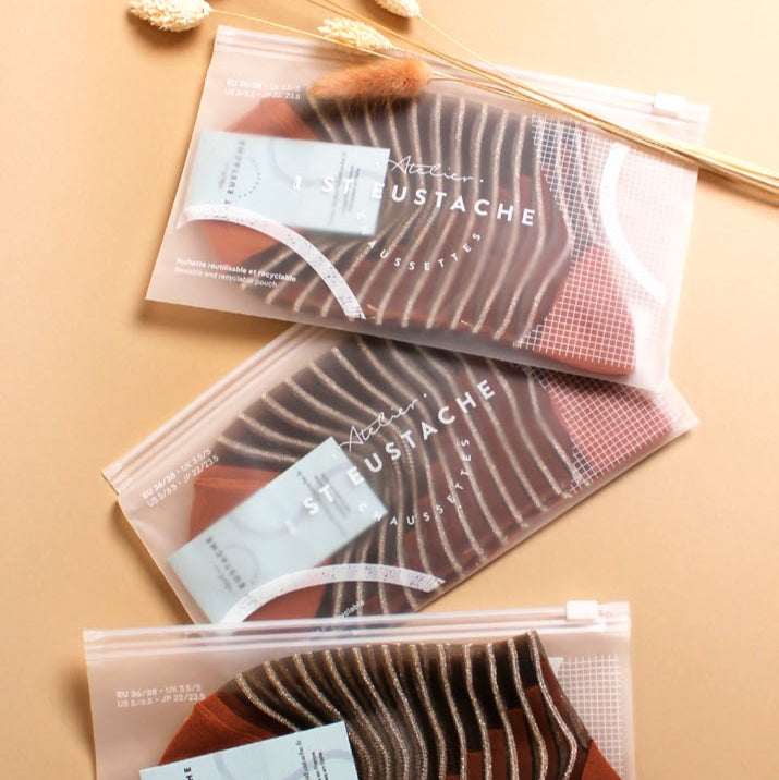 Atelier St Eustache - the precious transparent socks designed in France, and made in Italy. The origin tells the quality.