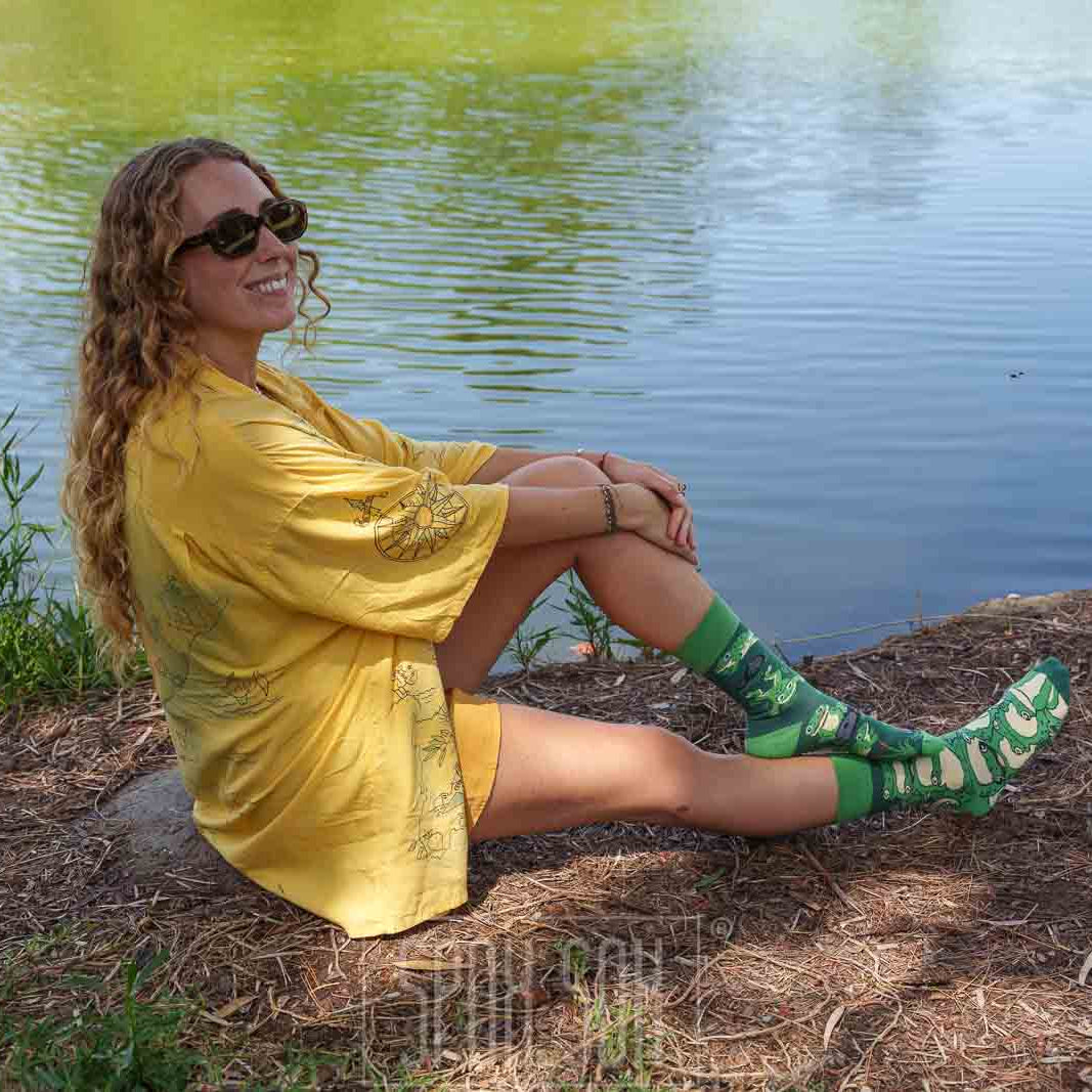 Perfect for adding a touch of whimsy to your everyday style or as a delightful gift for frog lovers. Don't miss out on these fun, nature-inspired socks with frogs!