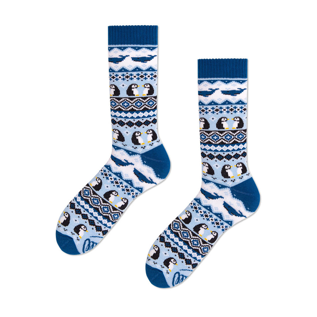 Winter socks with one of the most adorable animals on earth - penguins! Seek coziness with these lovely socks on in white and blue pattern.
