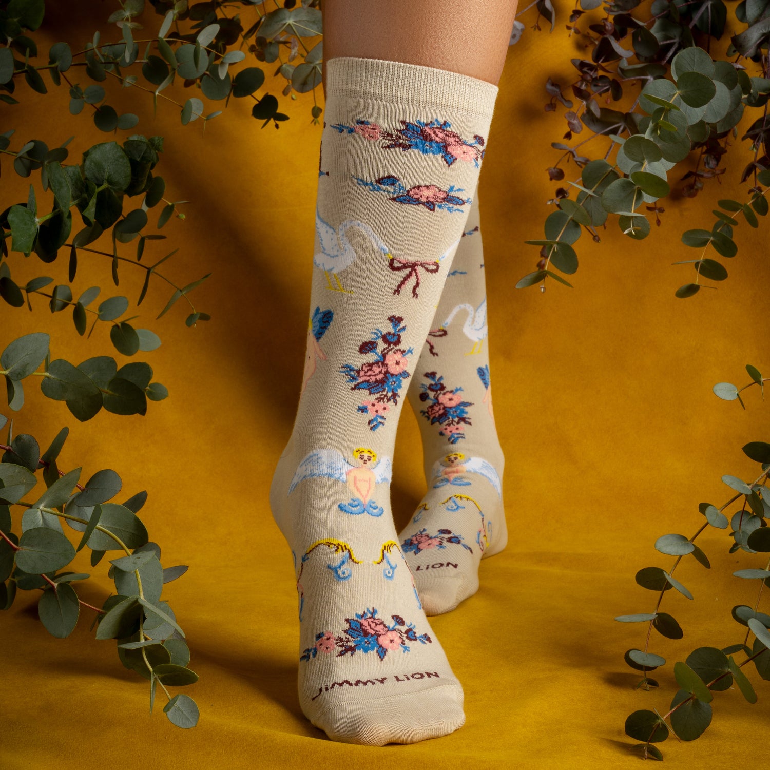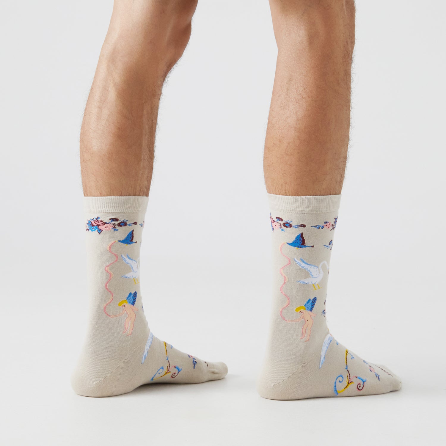 Unisex Casual grey socks featuring motifs from classic Italian art with a modern touch.