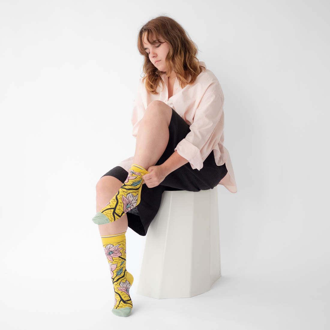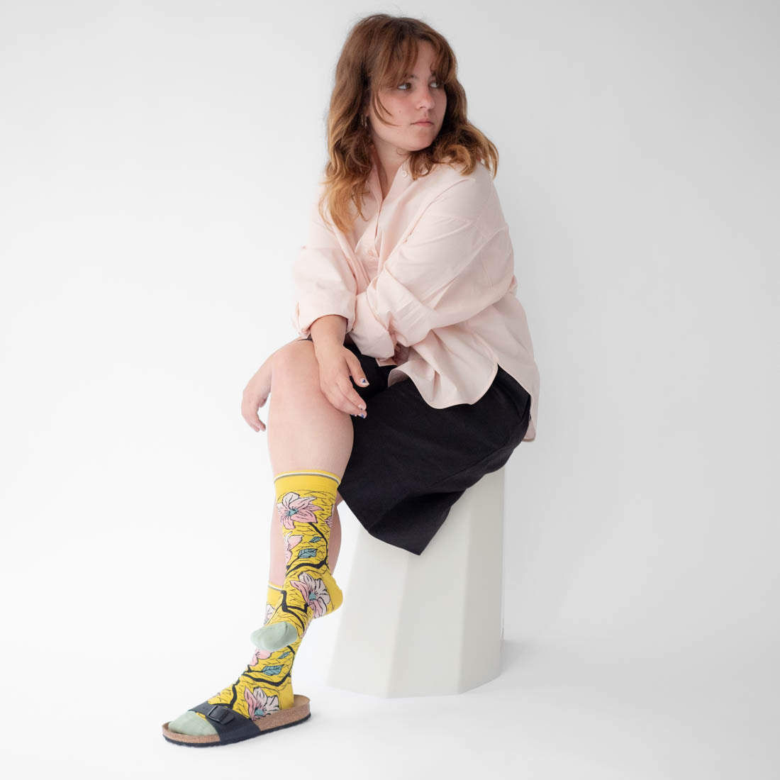 As sunlight filters through the treetops, nature weaves breathtaking patterns in the backlight. This collection recreates these moments of light and shadow through intricate knitting techniques. The layered colors and textures resemble the interplay of light and shadow in a forest, mysterious yet richly textured, turning your feet into a canvas of nature.