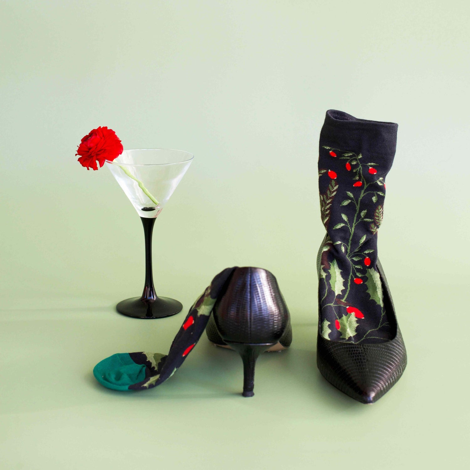 In the heart of the deep forest, night descends, illuminated by lanterns that cast a crimson glow. The air hangs thick with mystery. We wonder, are these beautiful mushrooms poisonous, these apples, are they laced with a curse? The women bathed in the red light, do they possess magical powers? Leaf-like hands pluck the vibrant red berries of the holly—are they a remedy, or something more?