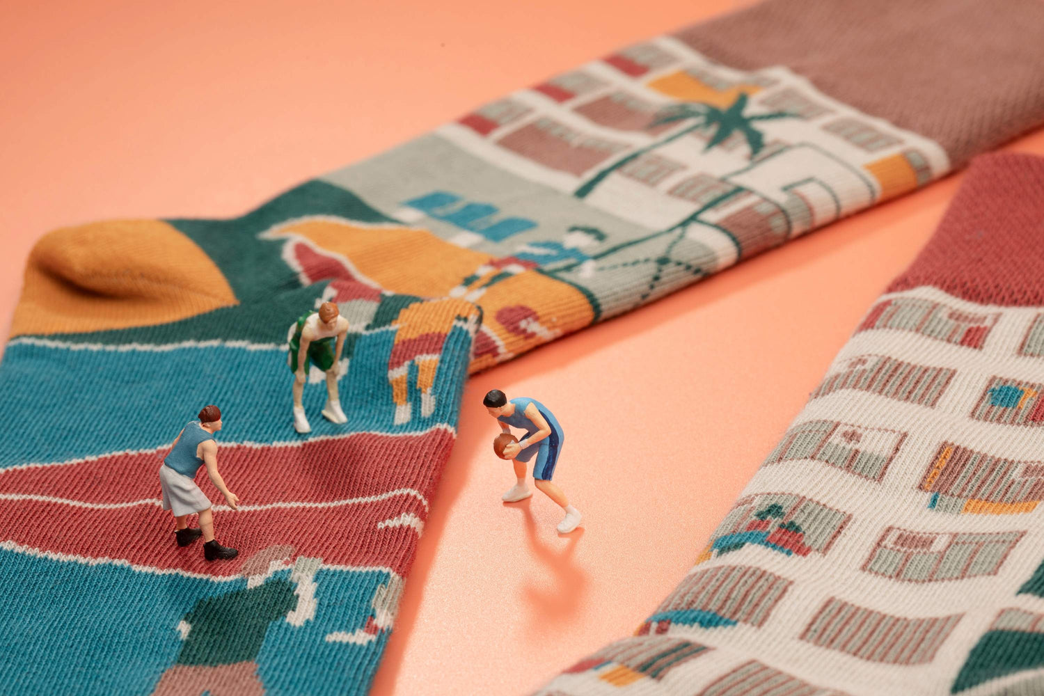 Built in the 60s, Choi Hung Estate (literally means Rainbow Estate) has always been called “the most beautiful housing estate” because of its rainbow-coloured wall. No one knows for sure why there is a rainbow in the middle of the city, some say the estate designer was inspired by the rainbow after the rain above the Victoria Harbour. This is rather romantic isn’t it? These picturesque colourful squares brightened up mundane lives and probably romanticised many first dates. As city redevelopment is on its way, let’s capture the most beautiful memories of the most beautiful estate on the asymmetric socks, and treasure the good old times forever.